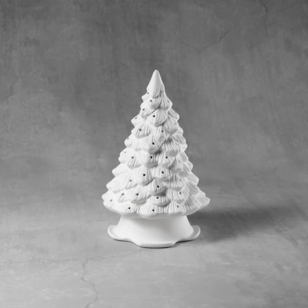 Ceramic Bisque Christmas Tree - 7 inch with base, lights and star