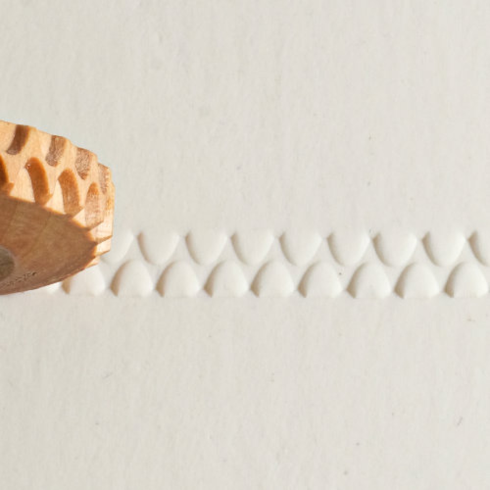 The monster teeth Finger Roller has a rolling design face that is 0.8 cm (8 mm) across. The Finger Roller is beautifully carved, has unique designs, releases well, and has a smooth carved texture. Roll the FR roller across the clay with your thumb and pointer finger to create a continuous pattern. The Monster Teeth Finger Roller is designed to roll across the clay to create straight lines, curvy lines, and borders.