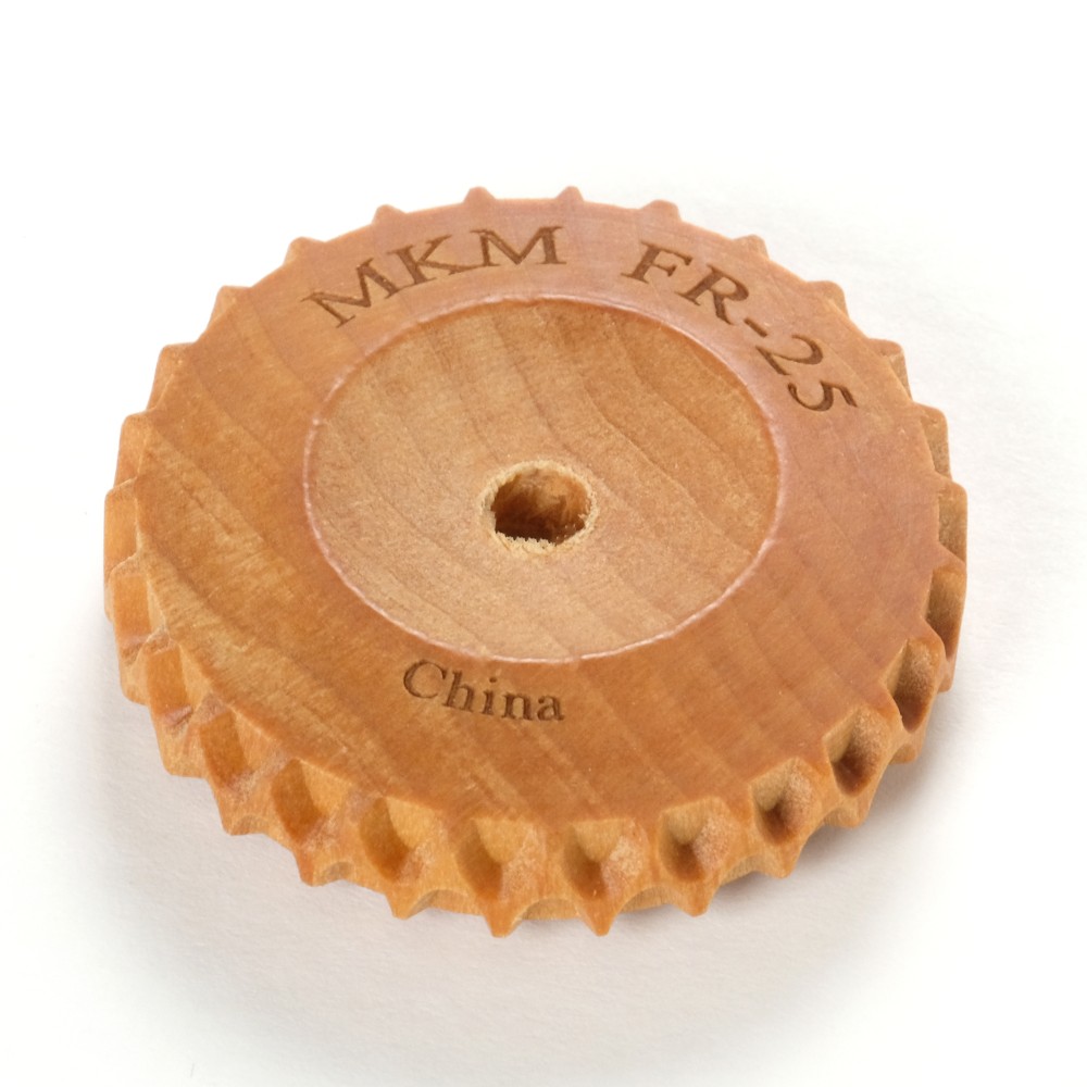 MKM wood tools are finished with oil to ensure durability over many years of use. The rollers are easily cleaned with water and a soft toothbrush. As with all wood tools, don’t let them sit in water for long periods of time.