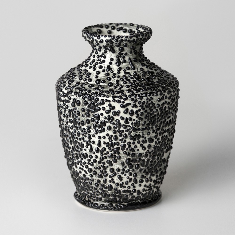 Use with Underglazes and Engobes: Beads remains dimensional when applied over Underglazes and Stoneware Engobes, preserving its raised texture. For best results, it is recommended to bisque fire the Underglaze or Engobe to cone 04 before applying the Beads, as this helps with adhesion and ensures the glaze performs effectively during the final firing.