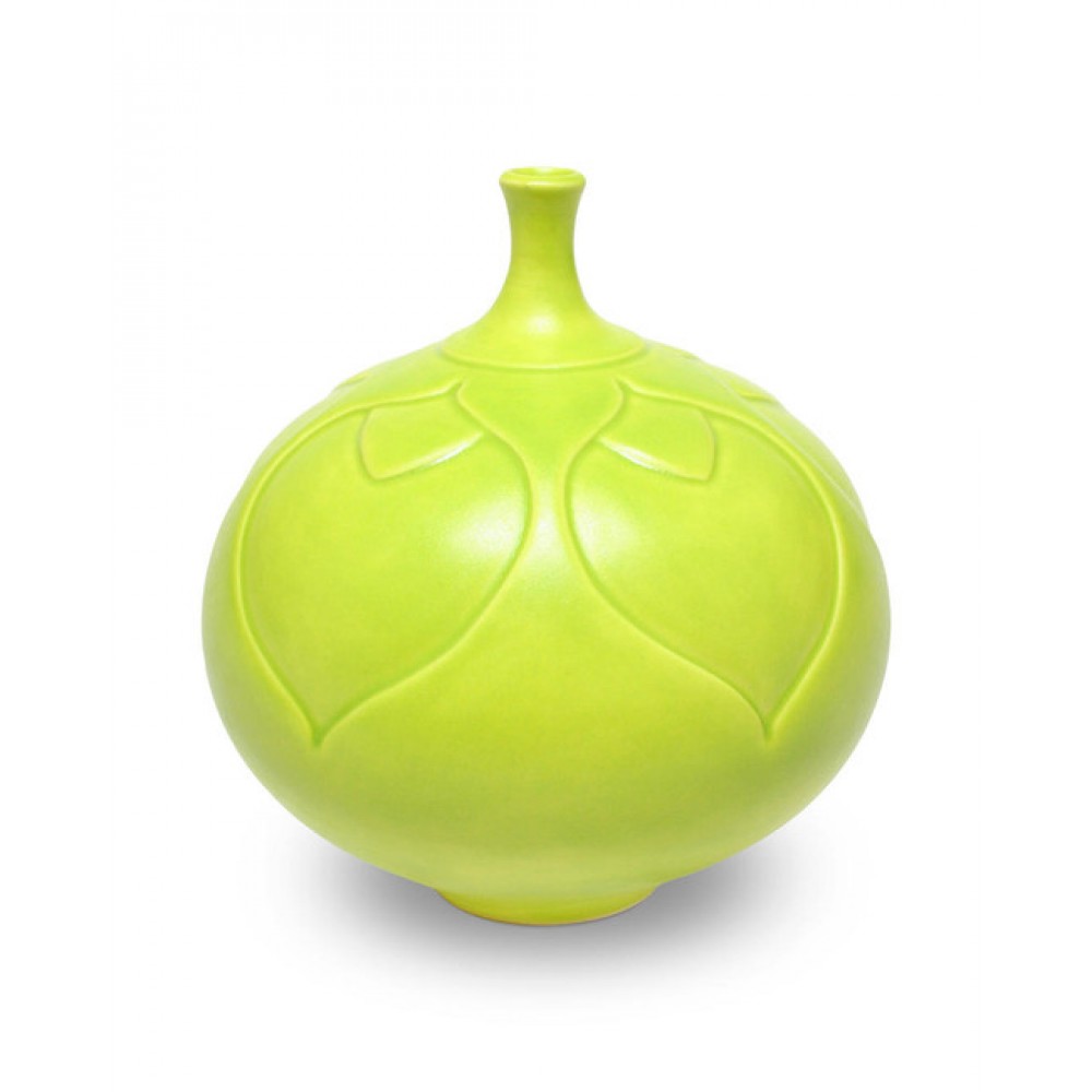Chartreuse is an opaque, buttery pea-green glaze that accentuates textured ware