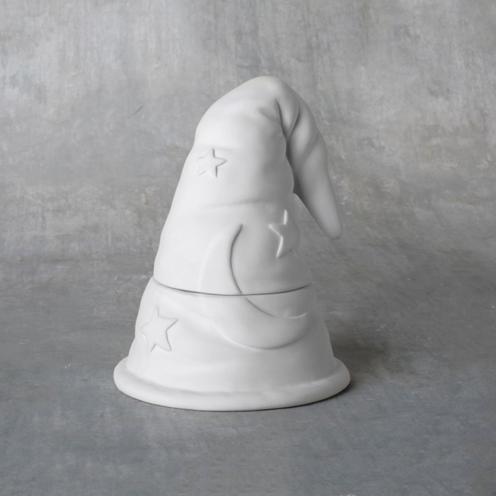 38329 - Wizard Hat Box in ready to paint - cone 04 Ceramic Bisque