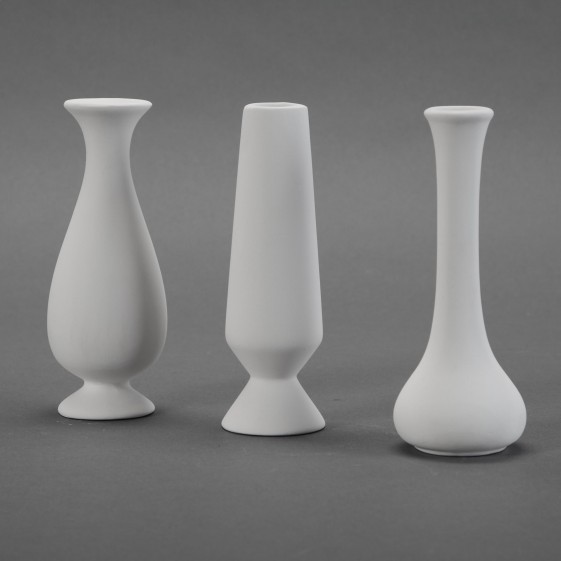 21674 3 Assorted Bud Vases - in Ceramic Cone 04 Bisque