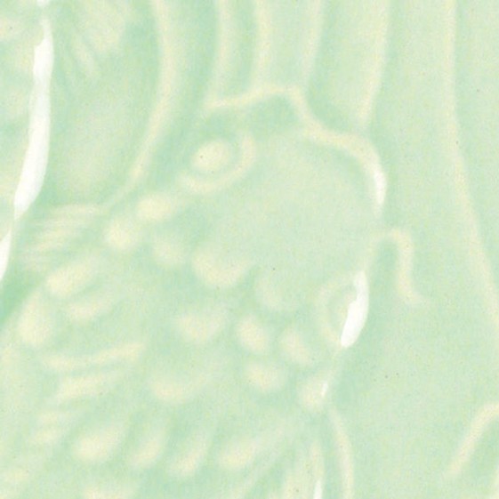 is a brilliant, glossy, semi- transparent pale green colored glaze that breaks